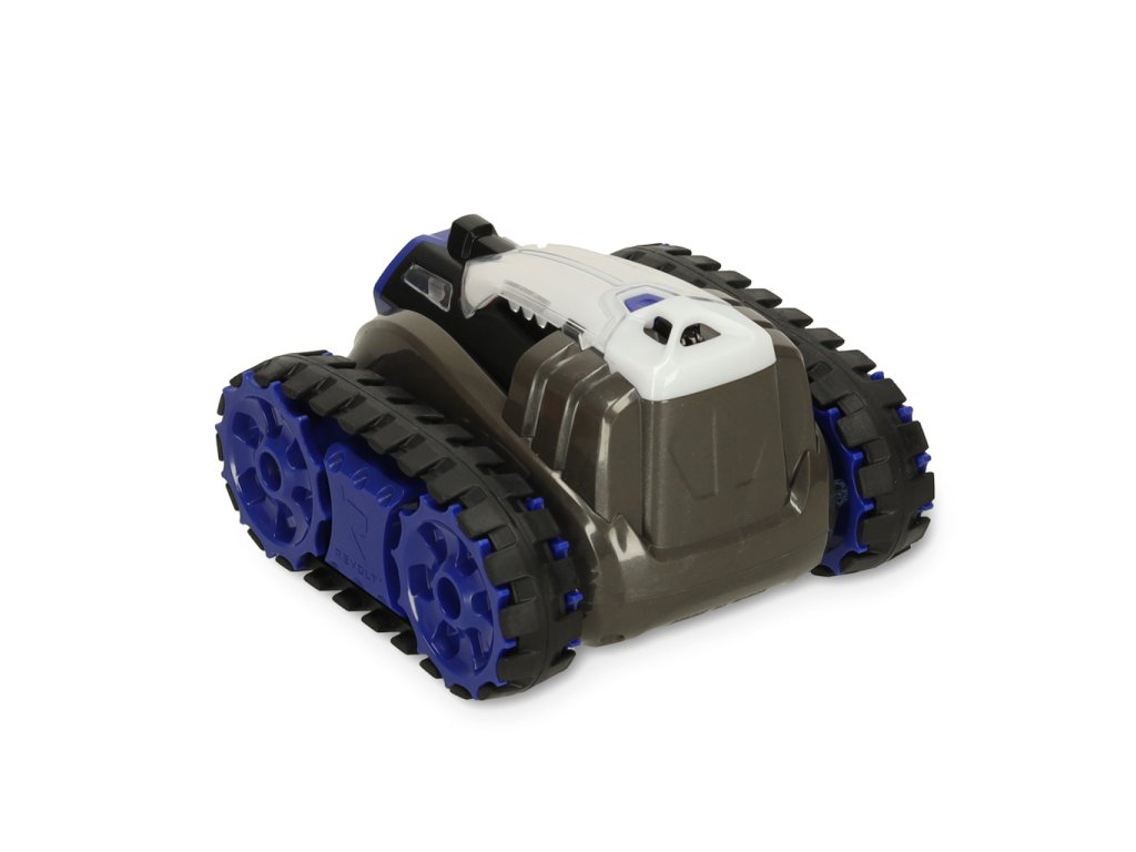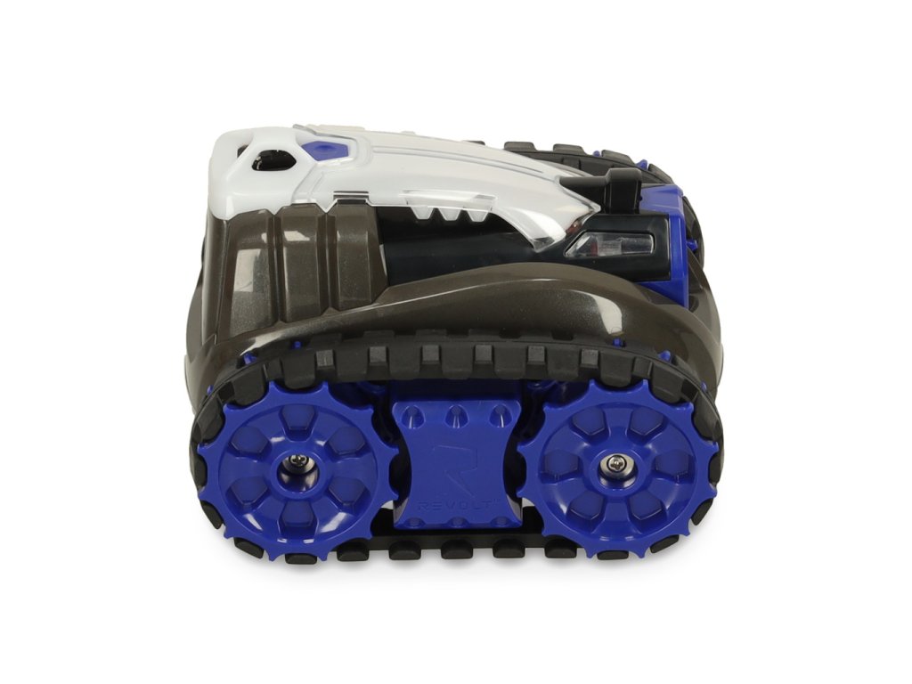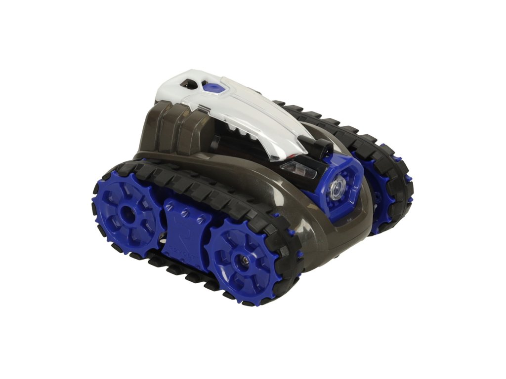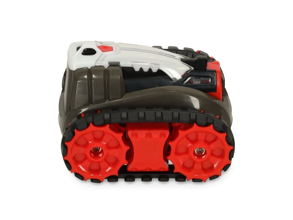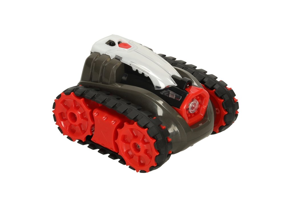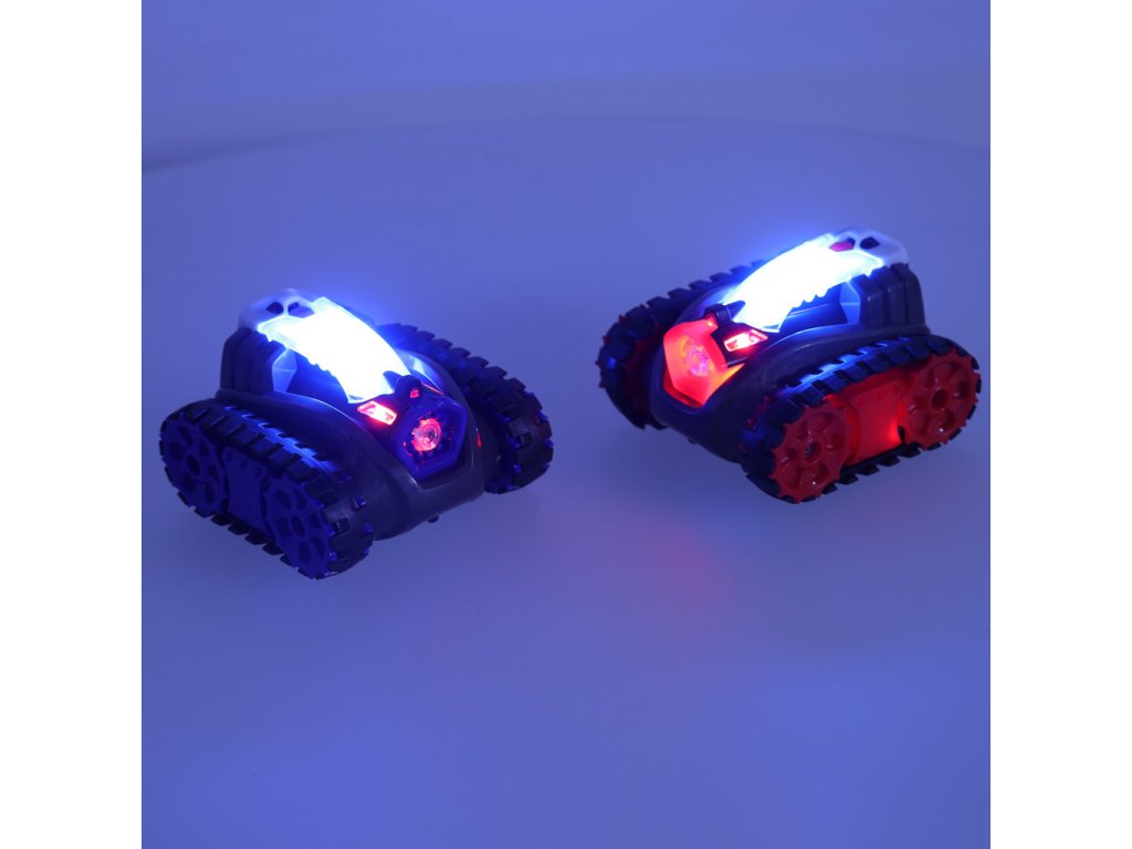 Șasiul cu șenile asigură mișcare lină pe orice suprafață și, în plus, nu zgârie podeaua. Două moduri de viteză permit adaptarea vitezei la abilitățile tale de control. LED-urile de pe lateralele tancurilor indică momentul când sunt pregătite pentru tragere.