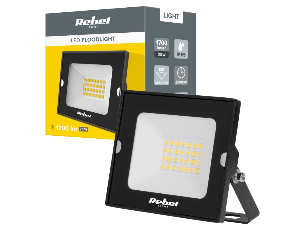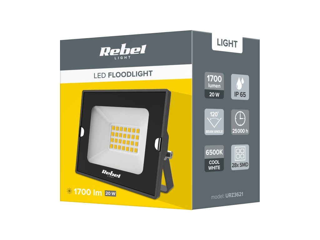 Proiectorul LED Rebel cu o putere de 20W asigură o lumină albă rece și intensă cu o temperatură de 6500K, ideală pentru utilizare exterioară și industrială. Datorită construcției compacte și parametrilor tehnici solizi, se dovedește eficient în diferite condiții.