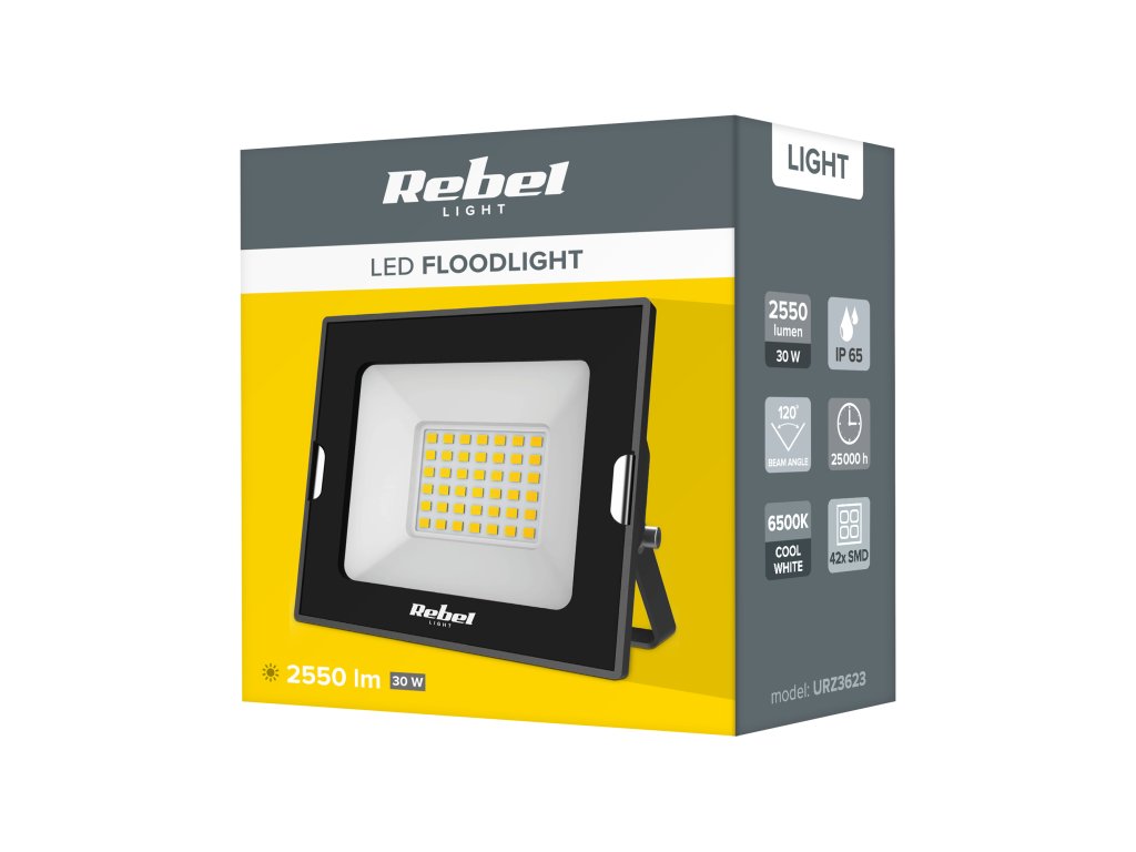 Sursa de lumină: 42 buc SMD2835 Putere: 30 W Temperatura culorii: 6500 K Flux luminos: 2550 lm Eficiență: 85 lm/W Factor de putere: 0,9 Unghi de emisie: 120° CRI: >80 Clasa de protecție: Clasa I Grad de protecție: IP65 Temperatură de funcționare: -20°C ~ +40°C Durată de viață: 25000 ore Alimentare: AC 220~240 V; 50 – 60 Hz Dimensiuni: 110 x 100 x 33 mmSursa de lumină: 42 buc SMD2835
