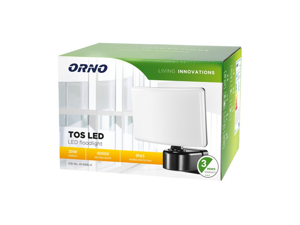 - Proiectorul oferă o putere de 30W, asigurând un flux luminos de până la 2200 lumeni. Cu o temperatură de culoare de 4000K, furnizează o lumină albă naturală, ideală pentru iluminatul grădinilor, curților, teraselor sau aleilor. Rezistență: