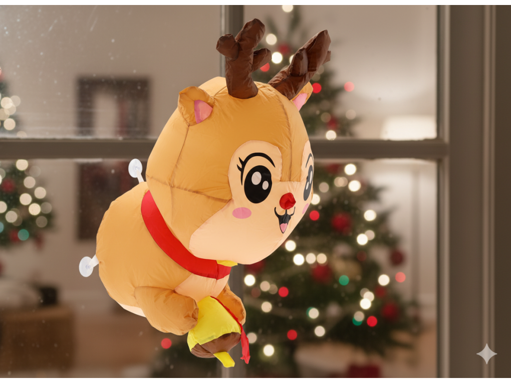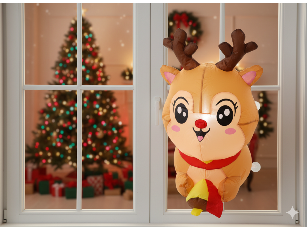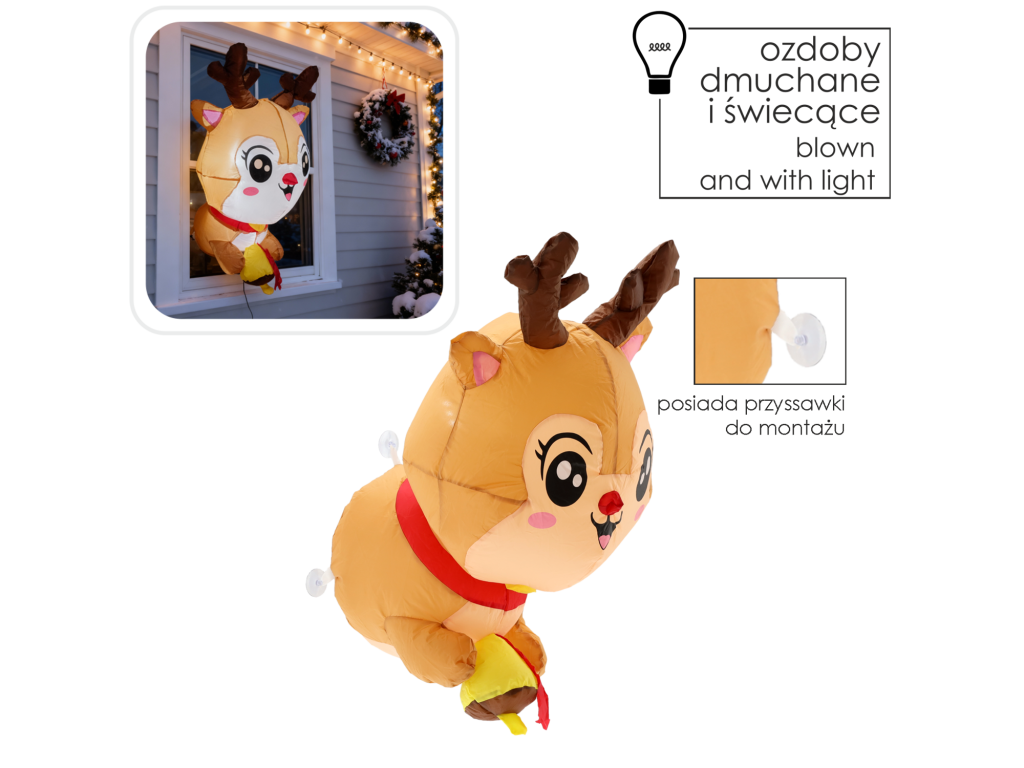 Îngrijit renuleț înfășurat cu LED, având înălțimea de 90 cm, este o decorațiune de Crăciun ideală pentru fereastră. Datorită ventozelor, îl poți instala ușor, iar lumina moale cu LED va adăuga interiorului tău o atmosferă caldă și magică de Crăciun. Ideal pentru acasă și birou.