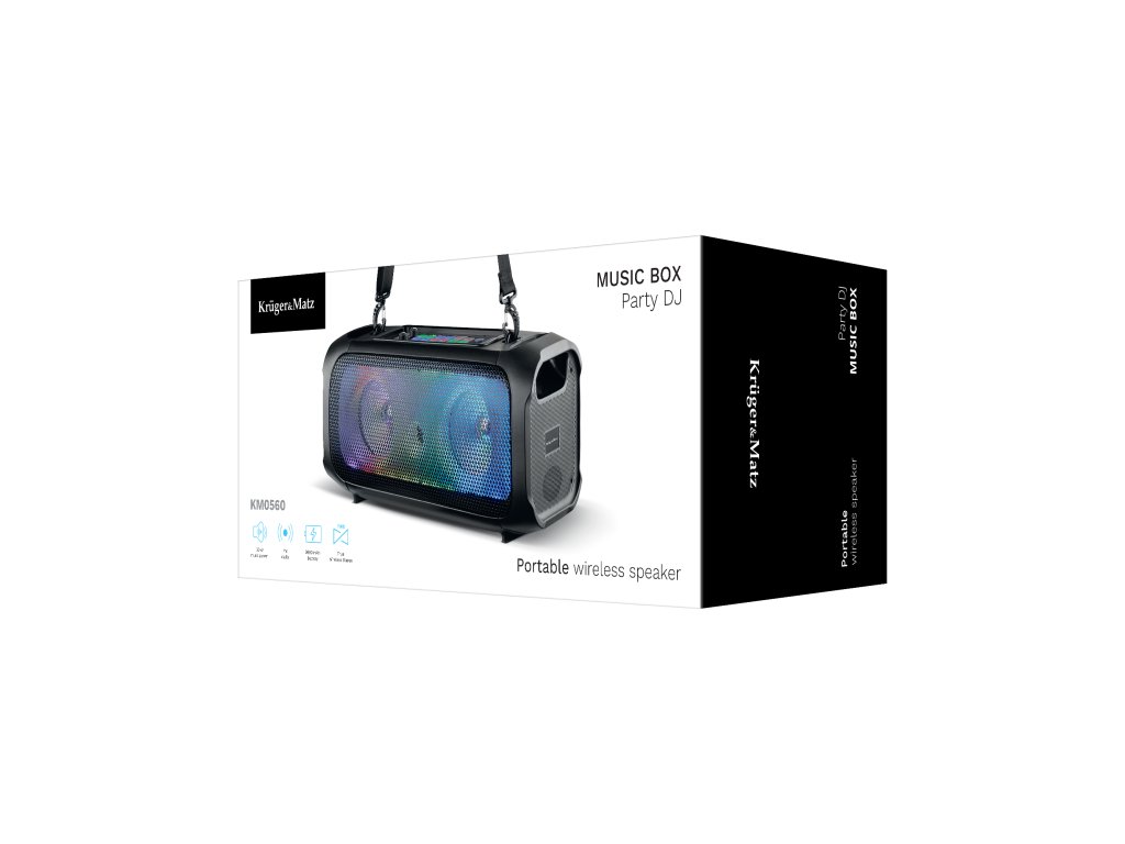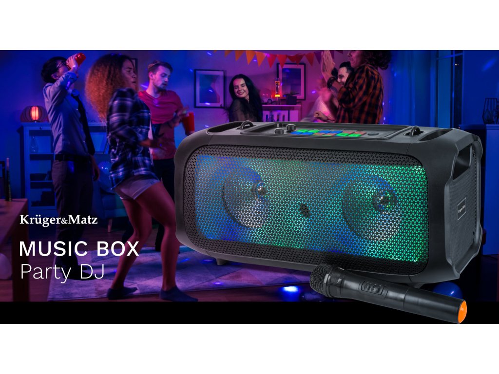 Music Box Party DJ poate fi conectat, datorită tehnologiei Bluetooth, practic la orice dispozitiv. Datorită prezenței porturilor AUX, USB și microSD, poți asculta playlistul tău preferat stocat pe smartphone, card de memorie sau pendrive. Music Box Party DJ este un boombox cu radio, așa că îți permite să asculți cu ușurință posturile tale preferate.