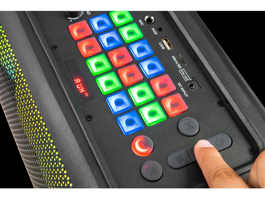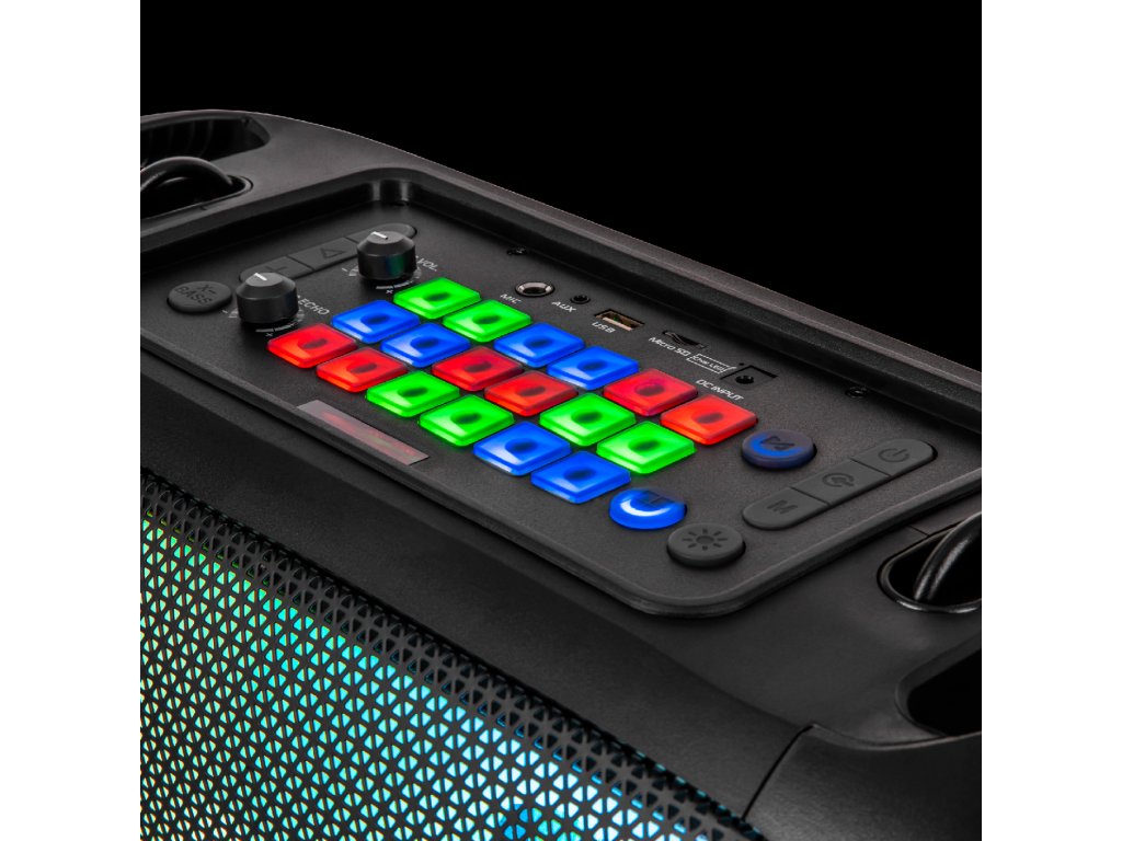Vrei să dai petrecerii tale o atmosferă de discotecă Music Box Party DJ vine cu LED-uri RGB care luminează difuzoarele și creează un spectacol de lumini uimitor. Așadar, plasează dispozitivul într-un loc central și bucură-te nu doar de sunetul de înaltă calitate, ci și de funcțiile extinse ale acestui difuzor!