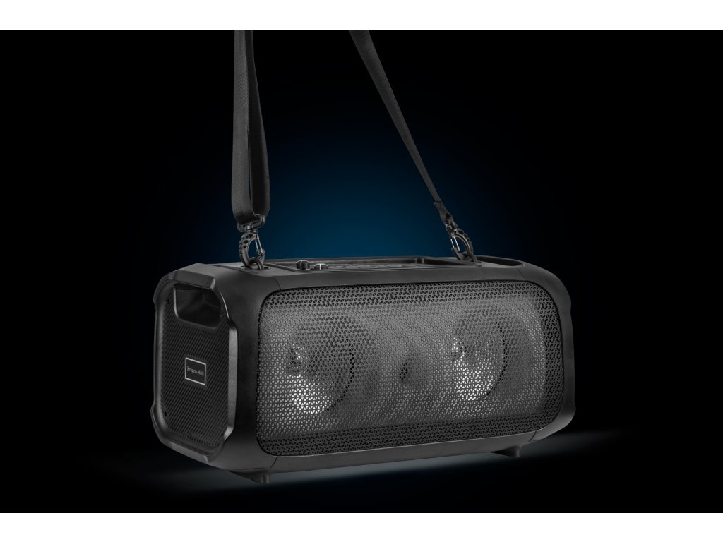 Nu îți place să stai mult timp într-un singur loc Lasă-te însoțit mereu de muzica ta preferată! Datorită mânerului comod și roților robuste, poți transporta ușor boxa Bluetooth la locul de desfășurare a petrecerii.