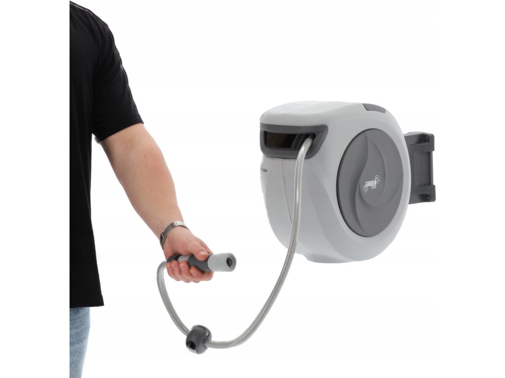 Reelul pentru hăți de grădină cu funcție de înfășurare automată este soluția ideală pentru oricine prețuiește ușurința în utilizare și confortul la udare. Datorită funcției de înfășurare și desfășurare automată și line a hății, dispozitivul oferă confort în utilizare, eliminând problema încurcăturii hății. Sistemul de înfășurare lentă a hății și acționarea prin arc asigură funcționarea lină și sigură a dispozitivului. Setul include un cuplaj rapid, o conexiune la apă și un duze de stropire, ceea ce face din acest produs un instrument versatil pentru grădină. Suportul rotativ de perete facilitează depozitarea tamburului, iar carcasă rezistentă garantează utilizare pe termen lung.