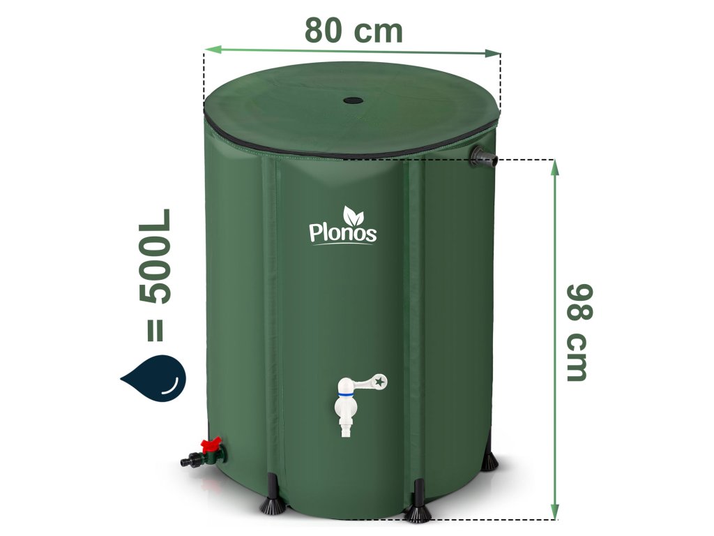 Rezervor de 500 l este o soluție practică, care poate păstra apă pentru 50 de stropitori complete de 10 litri! Astfel, puteți uda liber grădina și sera, economisind apă de la rețea și bucurându-vă de acces ușor la apa de ploaie.