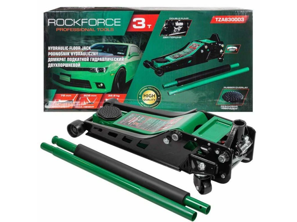 ROCKFORCE Hidraulic ridicător 3 TONE tip broască cu profil joasă cu 2 pitoane