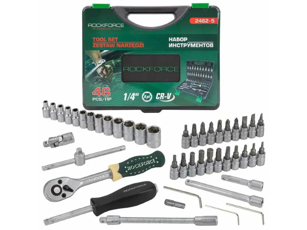Fiabil, versatil și practic – setul de chei Rockforce RF-2462-5 este un instrument compact, dar bogat, care se potrivește perfect atât pentru utilizare profesionistă, cât și pentru uz casnic. Conținând 46 de piese fabricate cu precizie, acest set oferă tot ce este necesar pentru a lucra cu diferite tipuri de îmbinări prin șuruburi – de la reparații simple, la servicii de vehicule, până la lucrări de asamblare precise.