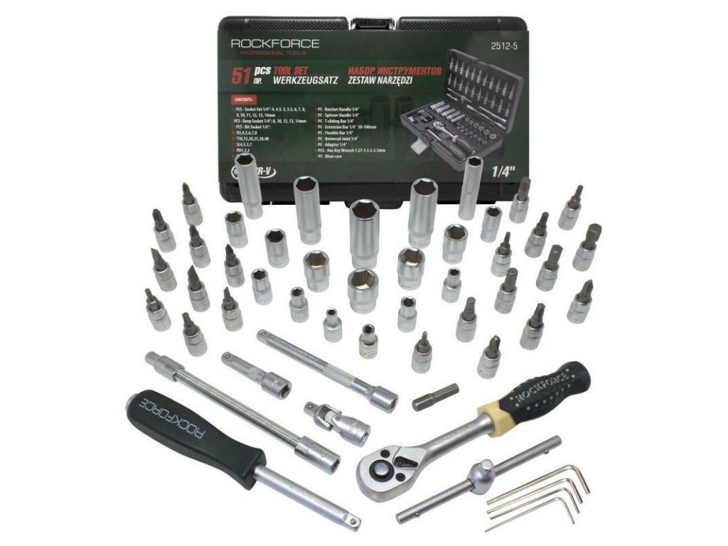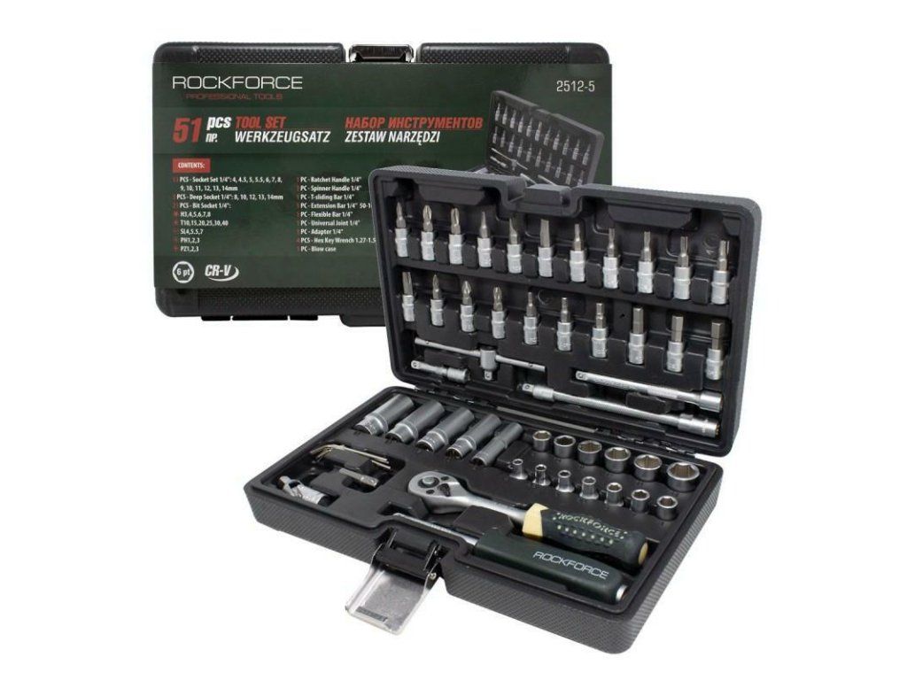 ROCKFORCE Set de scule cu cap hexagonal, 51 piese, 1/4" 4-14 mm