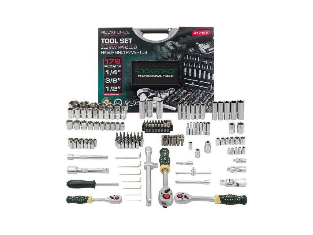 ROCKFORCE Set de Unelte cu 6 colțuri, 179 piese, Accesorii 1/4", 3/8", 1/2"