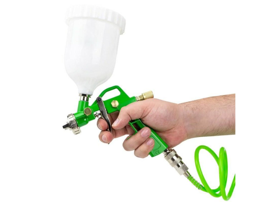 - Spray de vopsire: duză 1,5 mm, rezervor 600 ml (superior, plastic)