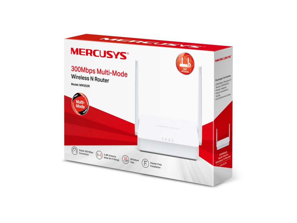 ROUTER MW302R, wireless, monoband, 300 Mb/s, 802.11n/g/b, 2xLAN, 1xWAN, 2 antene/ MERCUSYS