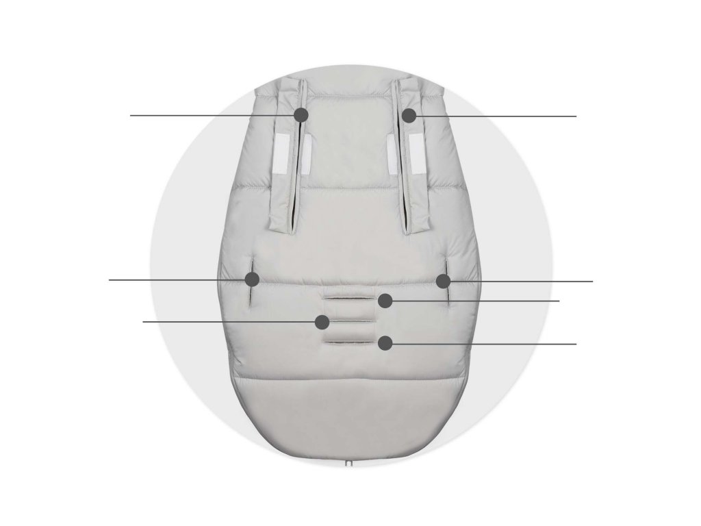 - element de fixare care împiedică alunecarea sacului de dormit în cărucior,