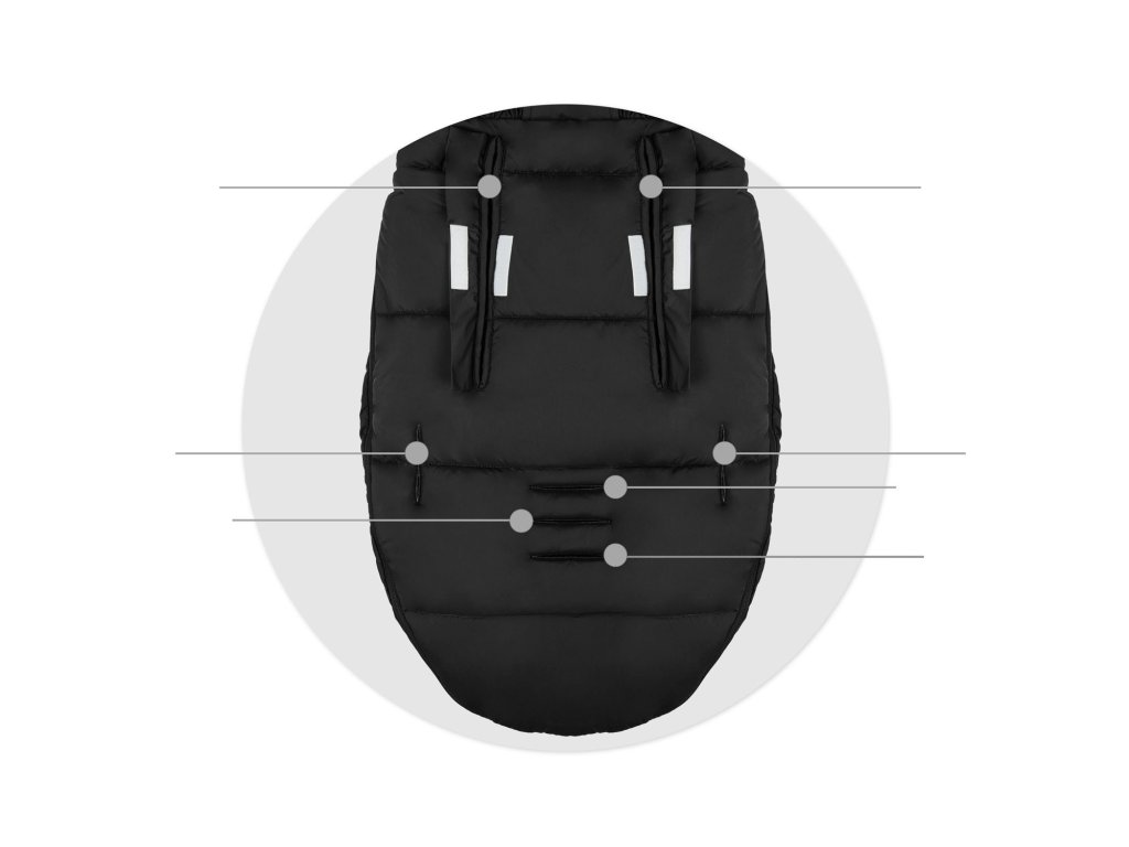 - element de fixare care împiedică alunecarea sacului de dormit în cărucior,