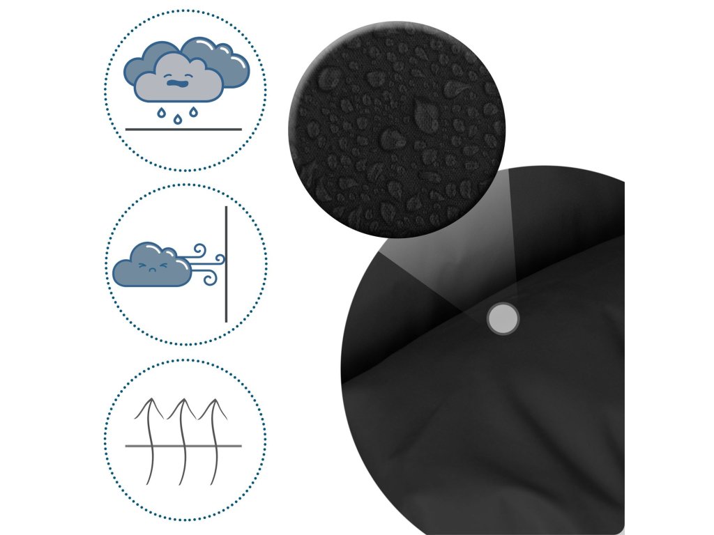 - Stratul superior garantează protecție completă impermeabilă și rezistentă la vânt.