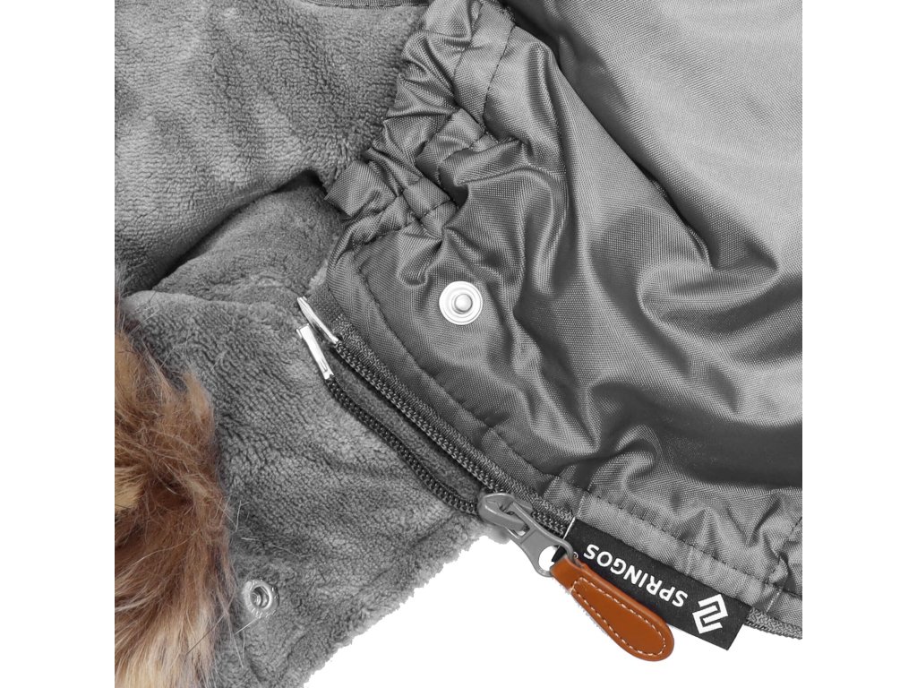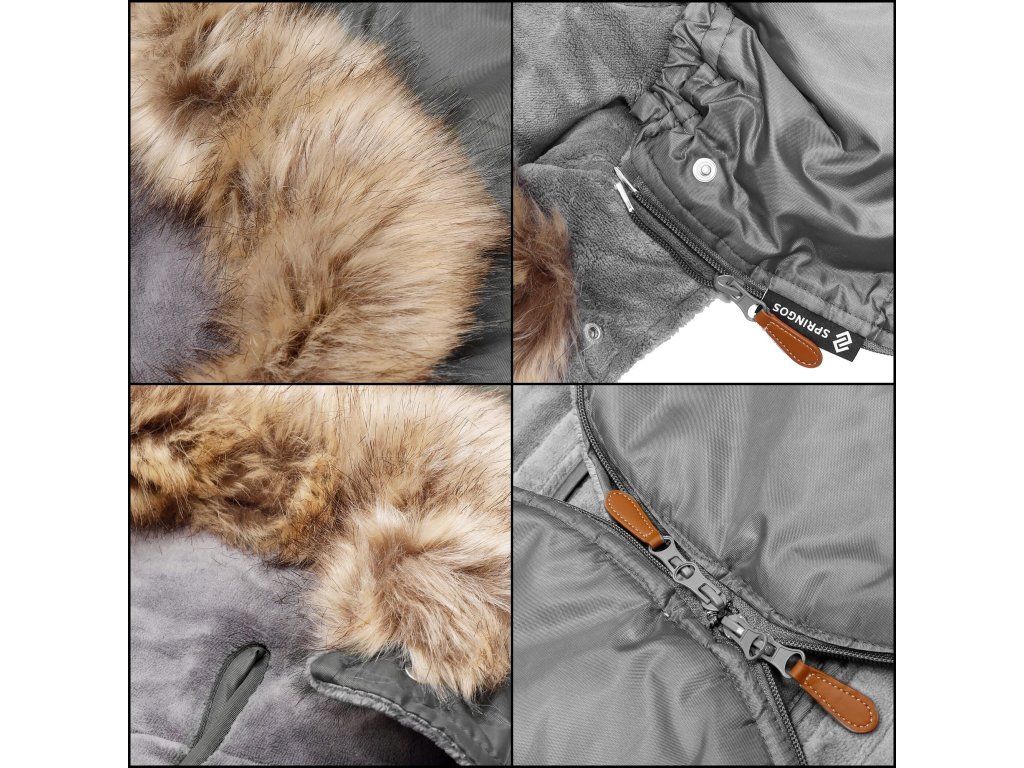 - Umplutură interioară moale, material cald, rezistent la apă, ușor; la fermoarele de sus este atașat un cursor maro care facilitează deschiderea și închiderea acestora