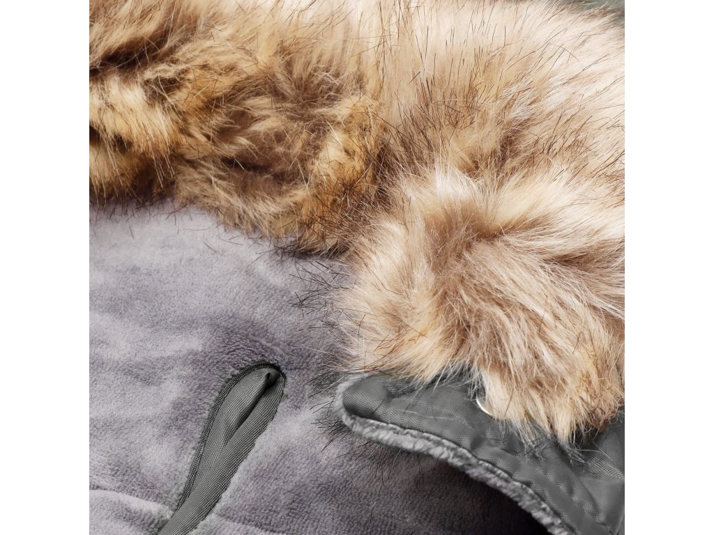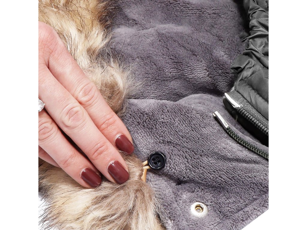- Guler din blană detașabil - atașat la glugă cu nasturi negri