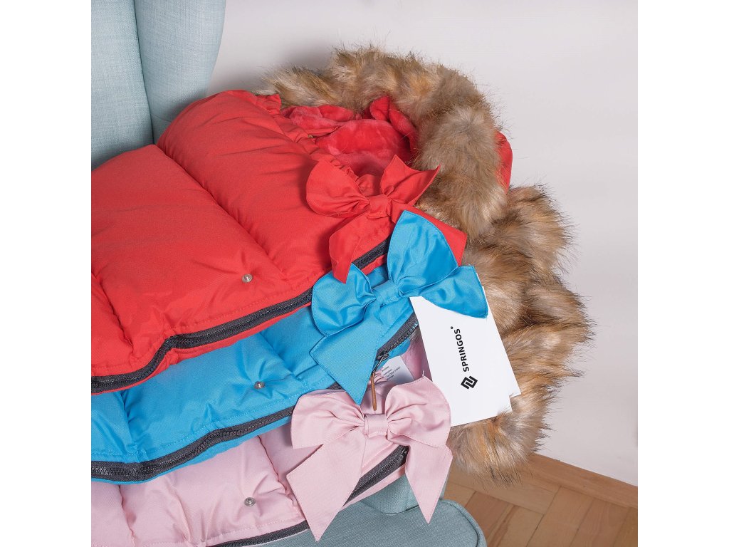 Avantaje: umplutură interioară cu material moale și cald, material impermeabil, ușor; pe fermoarele superioare este atașat un mâner maro care facilitează deschiderea lor