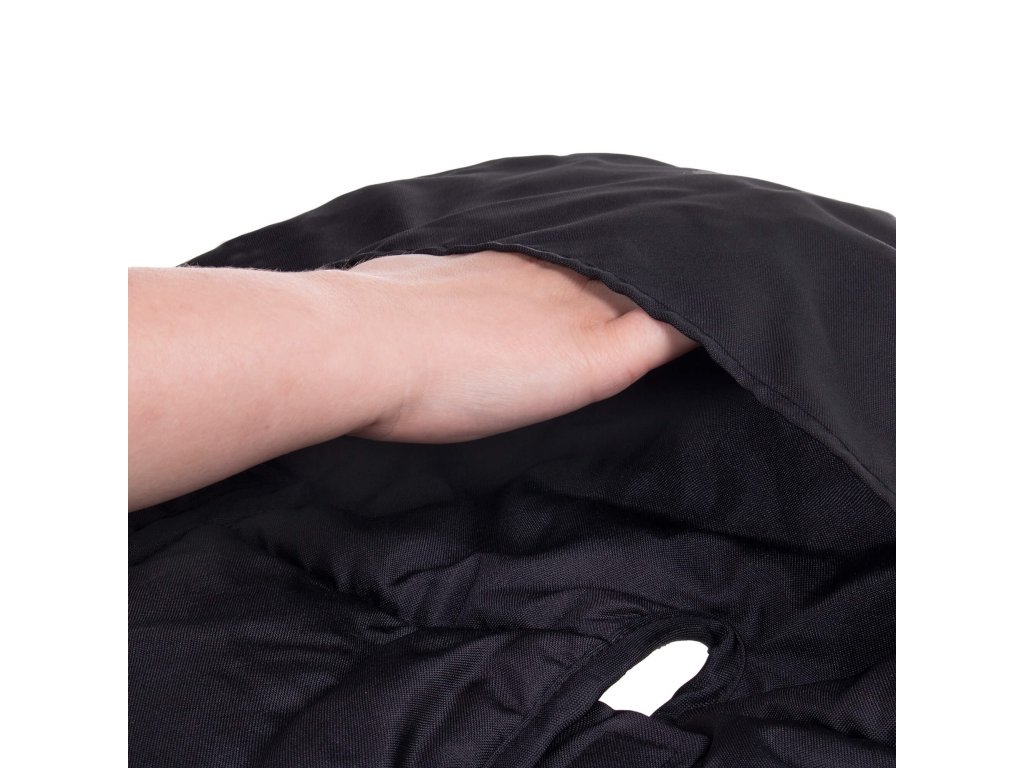 Pe partea din spate: 2 fante mari/deschizături fixate cu 2 benzi velcro + 4 fante suplimentare - pentru scaun/curele de montaj - dispuse astfel încât să se potrivească diferitelor curele