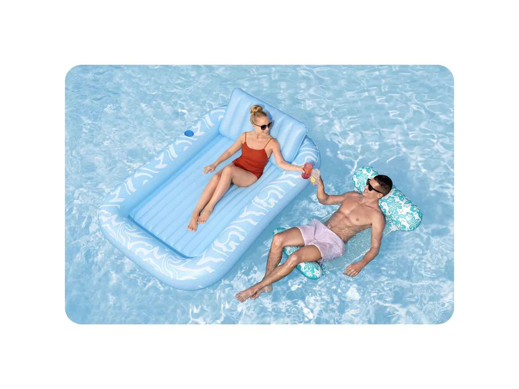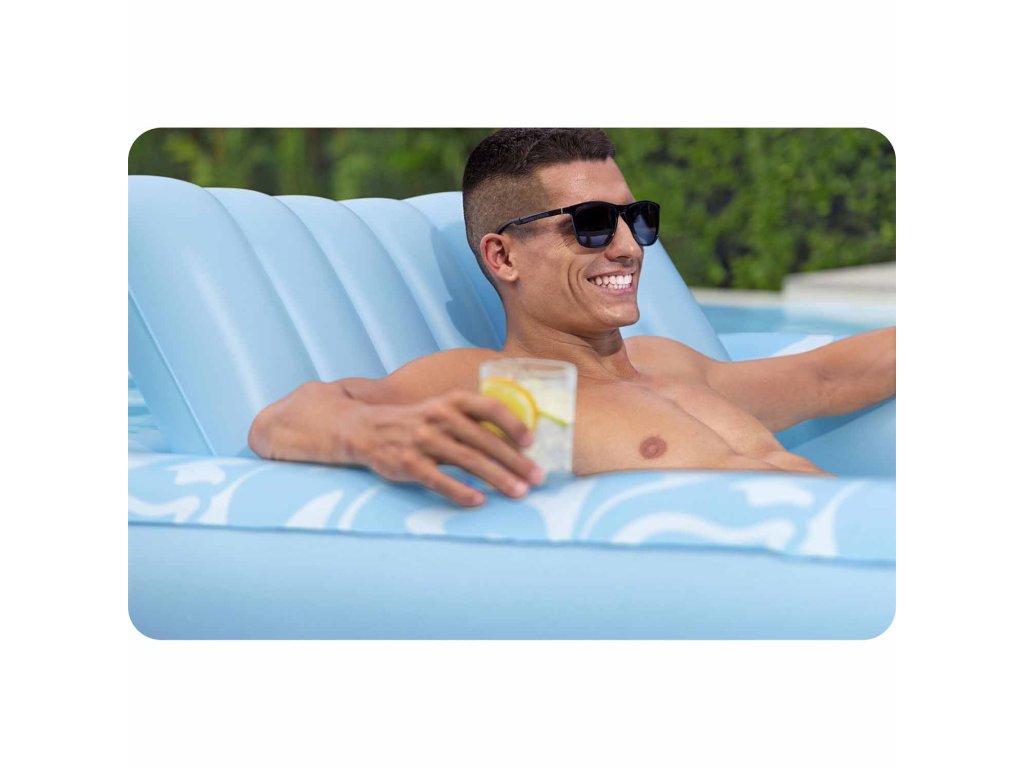 Spătarul confortabil oferă un confort deosebit în timpul înotului.