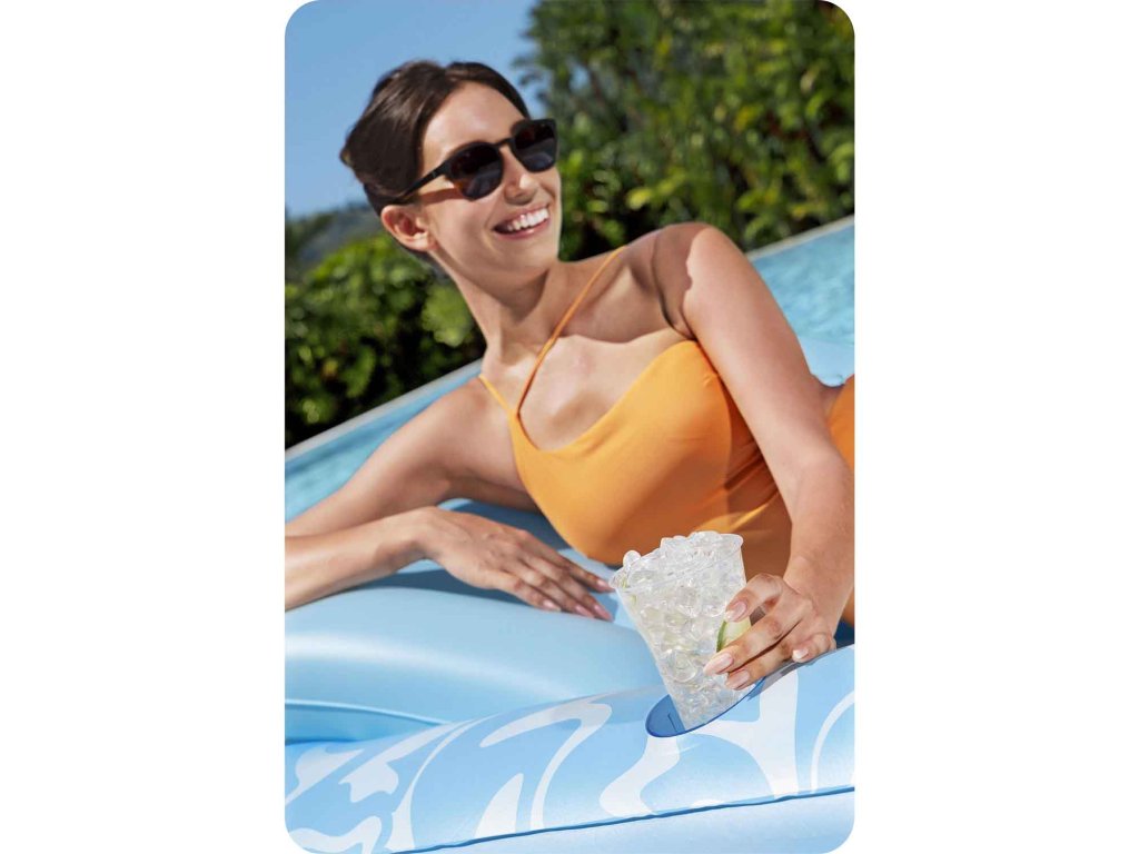 Montat pe lateral suport pentru băutură sau ulei de plajă, astfel vei avea la îndemână tot ce ai nevoie.