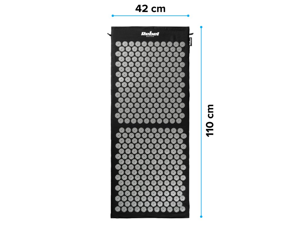 Salteaua pentru acupresiune Rebel Active are o dimensiune adaptată astfel încât să cuprindă spatele, zona lombară și coapsele, asigurând o acțiune complexă asupra corpului întreg. Lungimea și lățimea sa ergonomică fac să fie utilizată cu ușurință acasă, la birou, și datorită husă inclusă, poate fi luată și în călătorii.