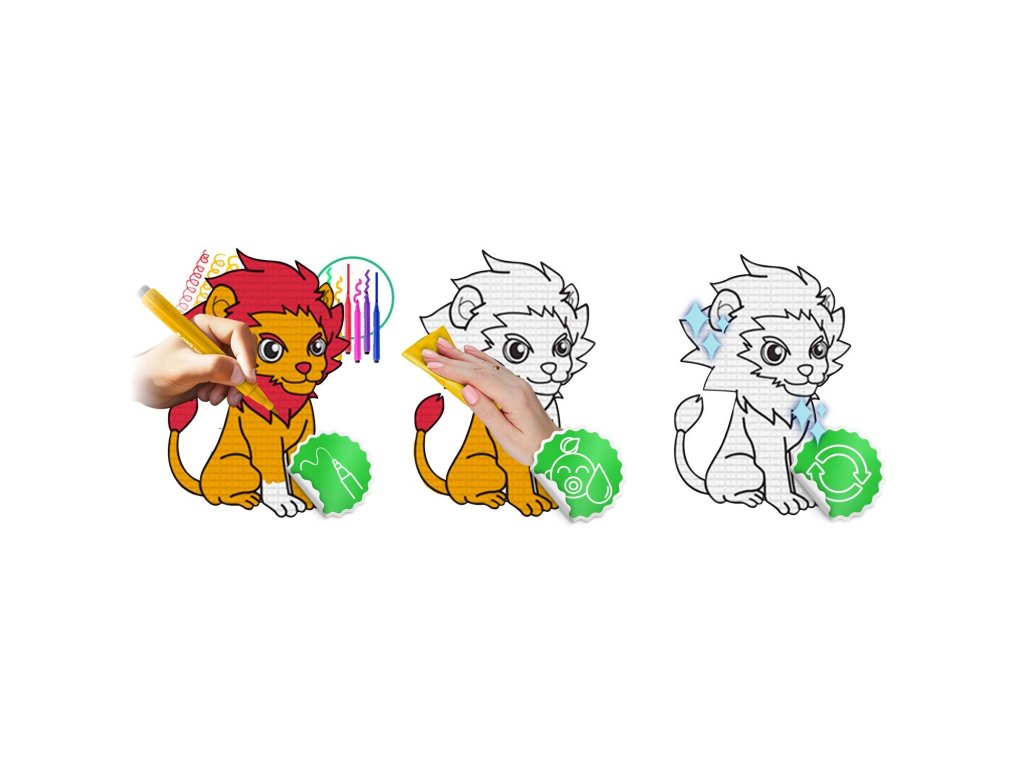 - ștergeți cu o cârpă umedă fără ORICE produse de curățare!Distracție nelimitată - reutilizabil, lavabil i setul include GRATUIT o set de carioci care durează mult timp.