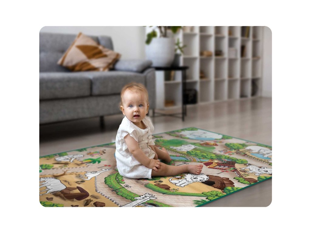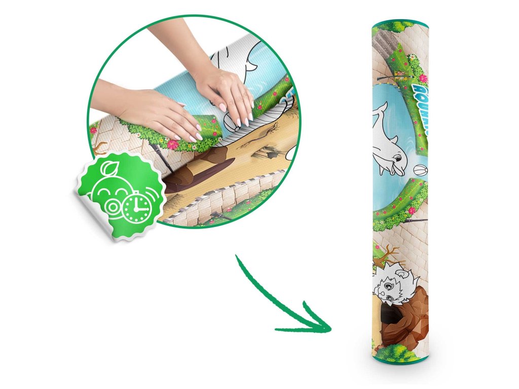 Acest covoraș mare, rulabil cu dimensiuni 120 x 92 cm , care are multe aplicații practice, va oferi copilului dumneavoastră confort și o distracție excelentă!