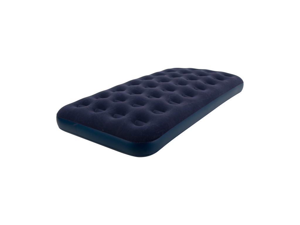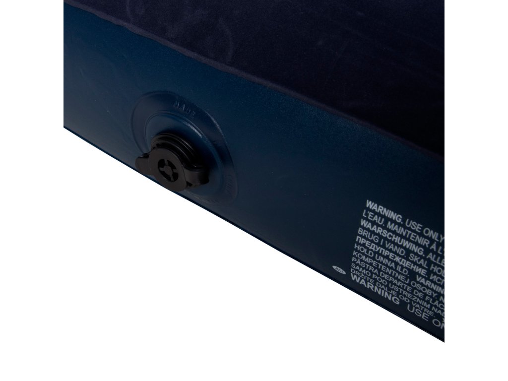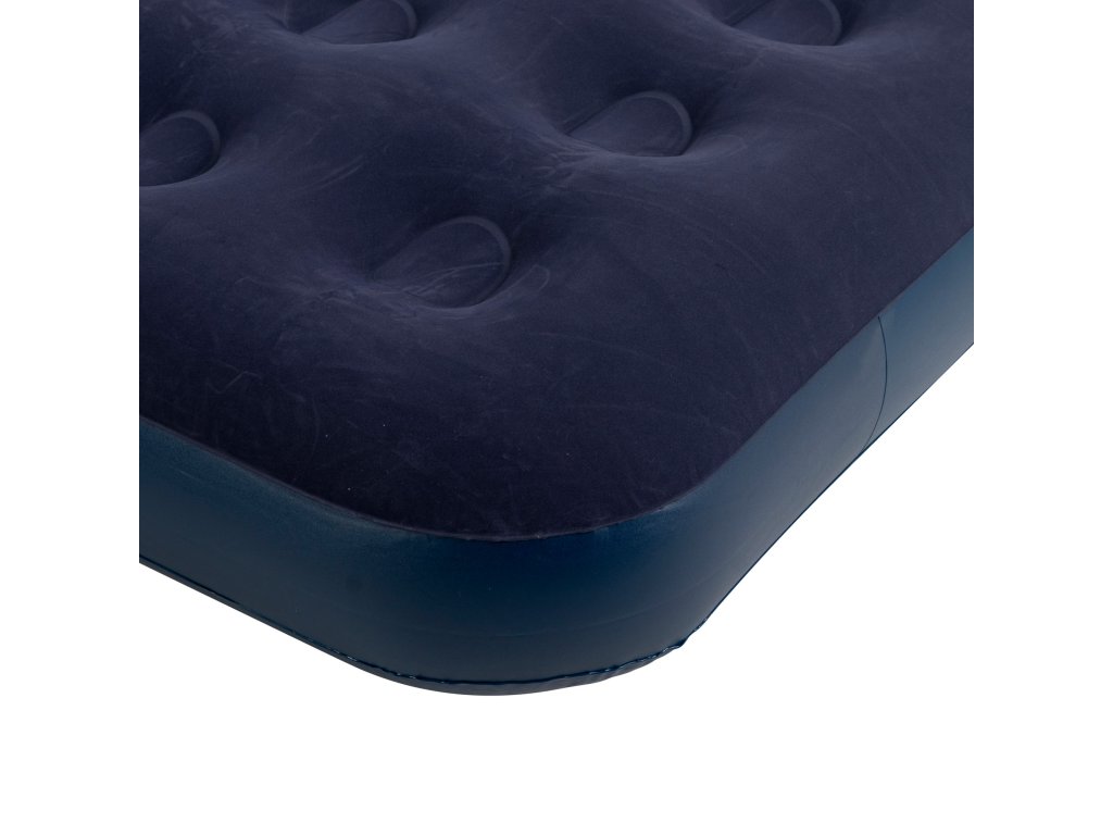 Fabricată din PVC rezistent și acoperită cu catifea moale, salteaua este rezistentă la umiditate și ușor de curățat. După golirea de aer, se pliază plat și cântărește doar 3,6 kg, ceea ce o face ideală pentru depozitare sau transport. Setul include un petic de reparație – în caz de mici deteriorări.