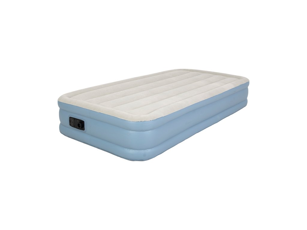 Cauți confort maxim în versiune pentru o persoană Salteaua gonflabilă mare AVENLI cu pompă electrică încorporată este o soluție practică și confortabilă pentru uz casnic. Datorită lățimii mai mari (99 cm) și înălțimii de 33 cm, oferă confort comparabil cu un pat tradițional. Este alegerea ideală atât pentru oaspeți, cât și pentru utilizarea zilnică.