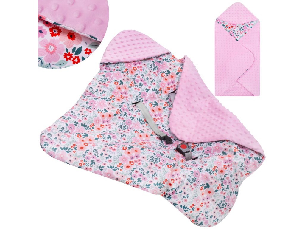 - Pătură echipată cu deschideri pentru curelele scaunului auto/purtătorului: 1 inferior + 2 x 2 superioare (reglare pe două niveluri)