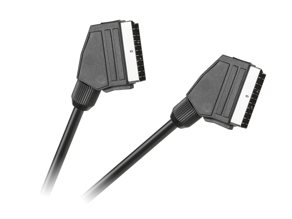 Cablu cu conectori SCART la ambele capete este utilizat pentru transmiterea analogică a imaginii și, de exemplu, pentru conectarea televizorului la un tuner. Calitatea înaltă a materialelor din care este fabricat garantează o transmisie a semnalului fără interferențe și asigură o durată de viață lungă a cablului. Cablu este conform cu standardele menționate în normele poloneze și internaționale.