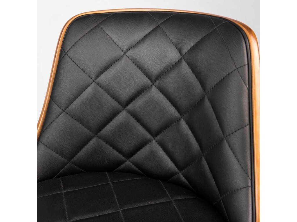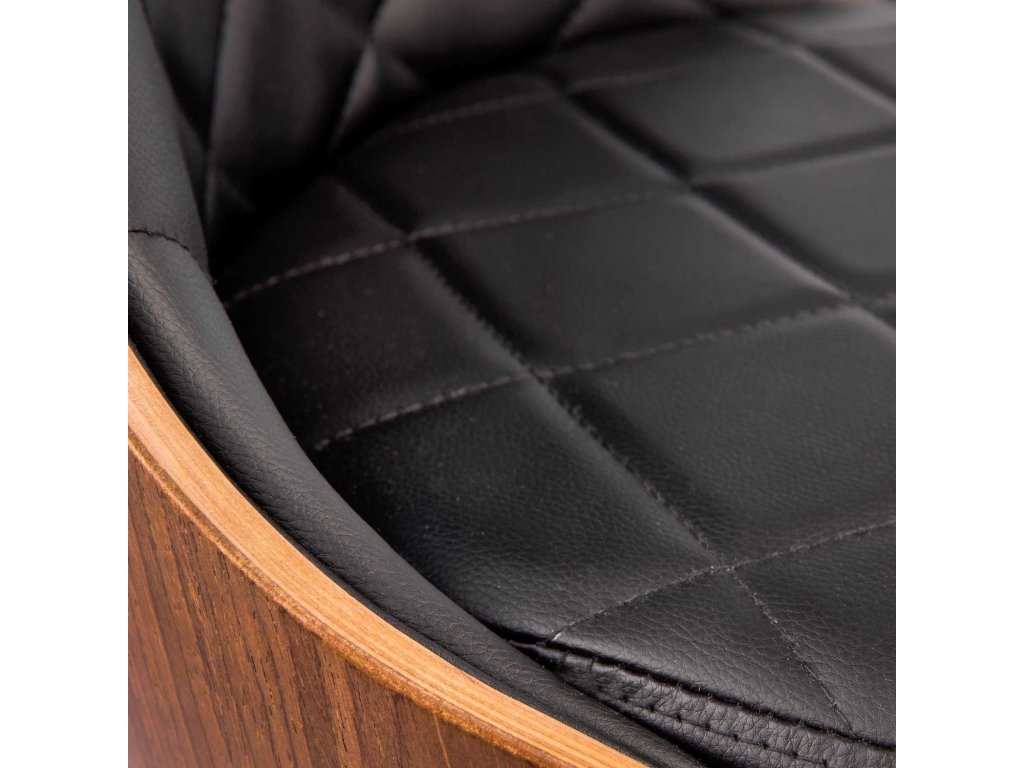 Scaunul confortabil din piele ecologică invită la relaxare. Tapiteria moale, placută la atingere, acoperă și spătarul taburetului, permițând relaxarea. Picioarele pot fi sprijinite de suportul de picioare.