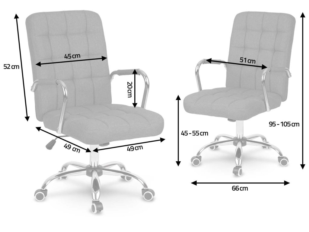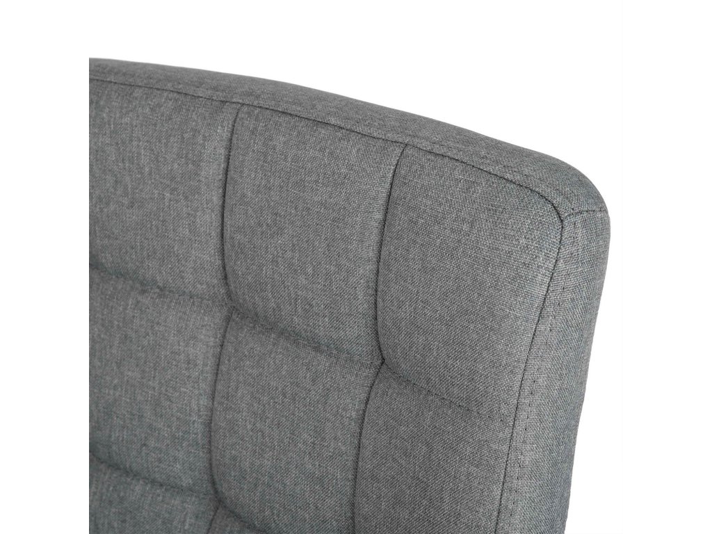 Designerii au optat pentru țesătură cu structură împletită, foarte populară în camerele de zi de acasă. În combinație cu finisajul argintiu, obține eleganță de birou.