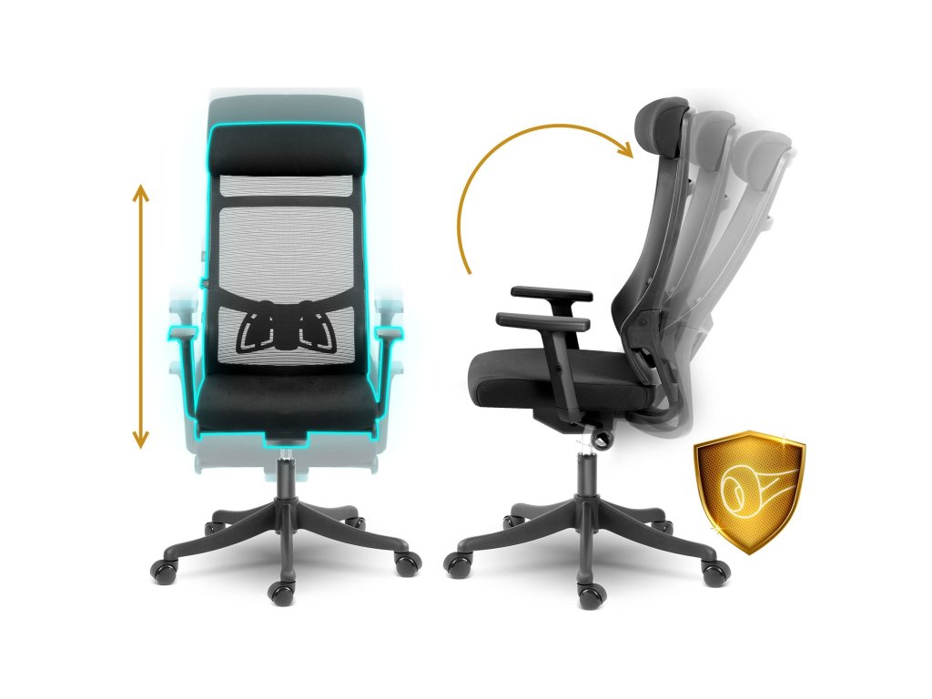 ajută la menținerea unei poziții ergonomice și sigure. Se adaptează formei corpului dumneavoastră și oferă confort la ședere.Simțiți-vă ca un adevărat CEO!