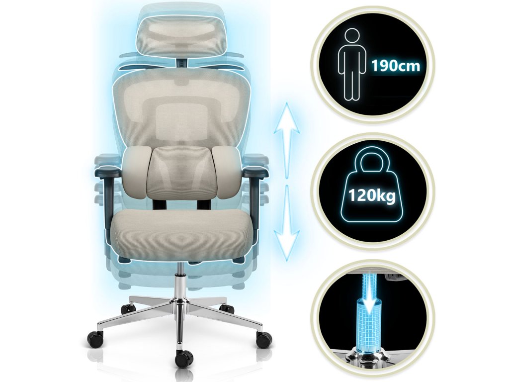 - Indiferent de înălțimea ta, poți seta cu ușurință suportul ergonomic pentru a lucra confortabil și fără încărcare.