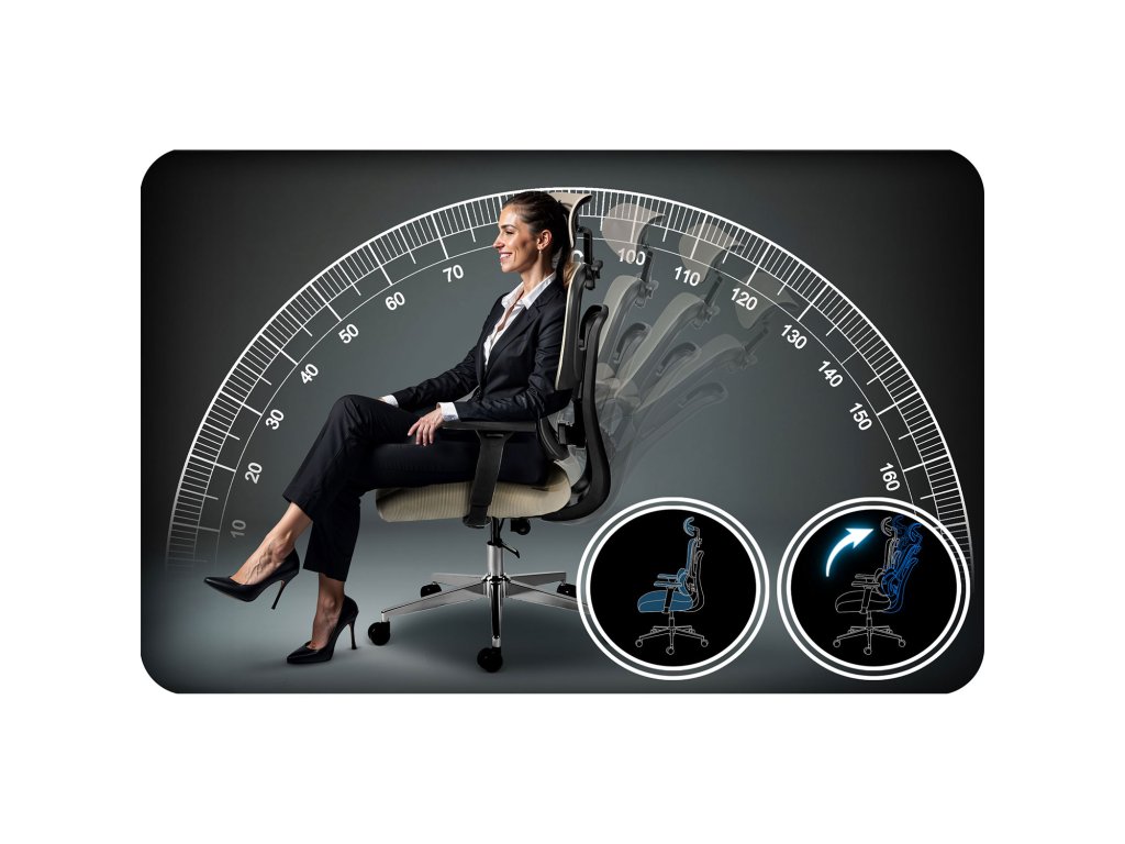 Este suficient să înclini ușor spătarul pentru a ușura vertebrele, relaxa mușchii și a-ți recăpăta energia – chiar și în timpul unei zile lungi la birou!