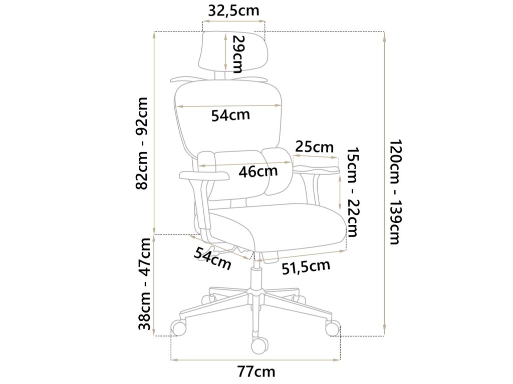 - înălțimea spătarului: 82-92 cm,