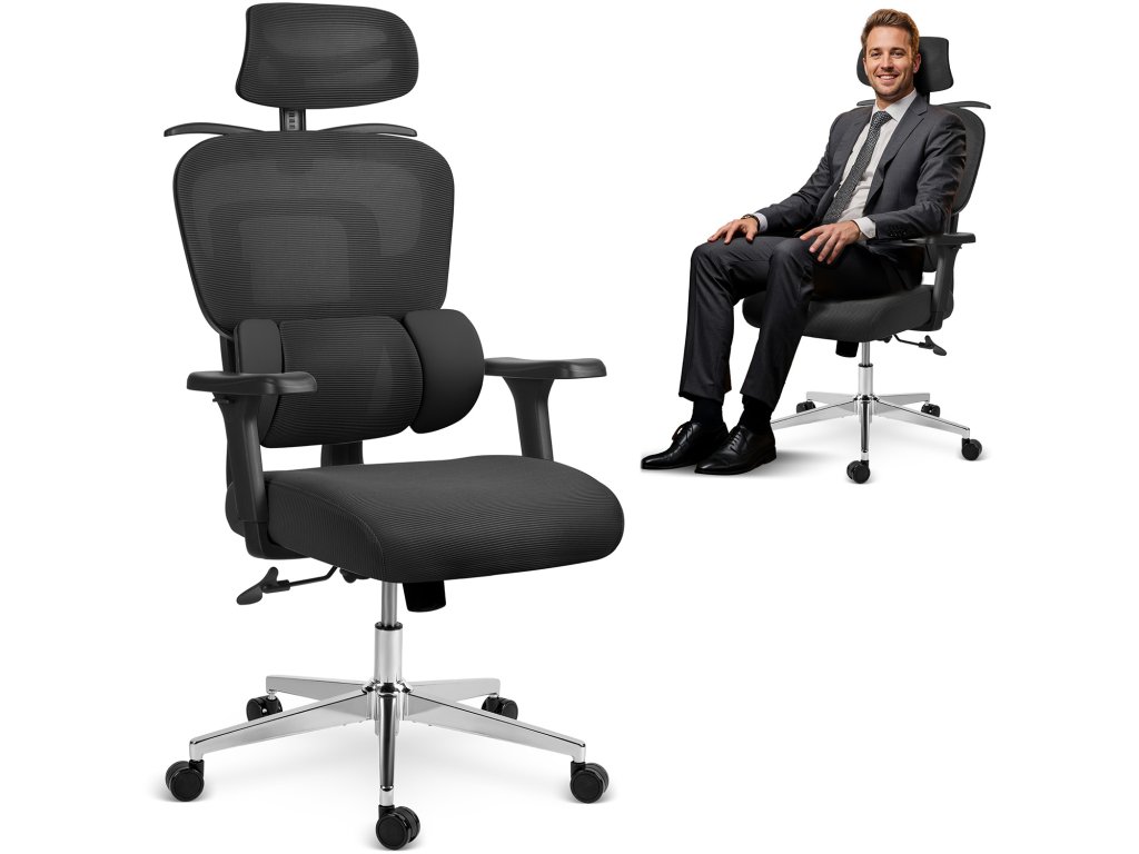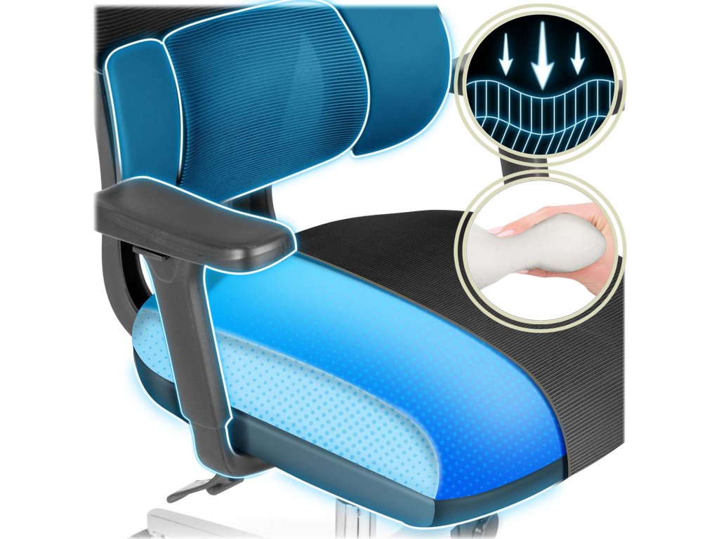 - Umplutura ergonomic se adaptează perfect la corp, distribuind uniform presiunea și reducând tensiunea pe parcursul întregii zile.