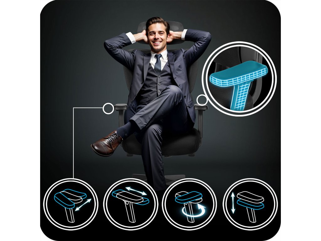 Așează-te, ajustează și simte diferența!Profilul ergonomic adaptat minimizează tensiunea musculară, reduce riscul de durere și îmbunătățește concentrarea la locul de muncă.