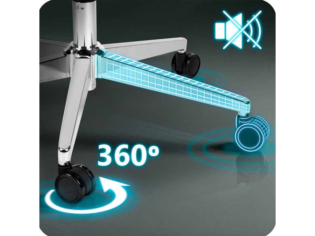 Bază solidă din crom și roți silențioase acoperiteRama din crom de înaltă calitate oferă stabilitate și durabilitate excepțională, iar finisajul elegant este rezistent la zgârieturi și coroziune.