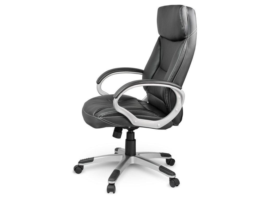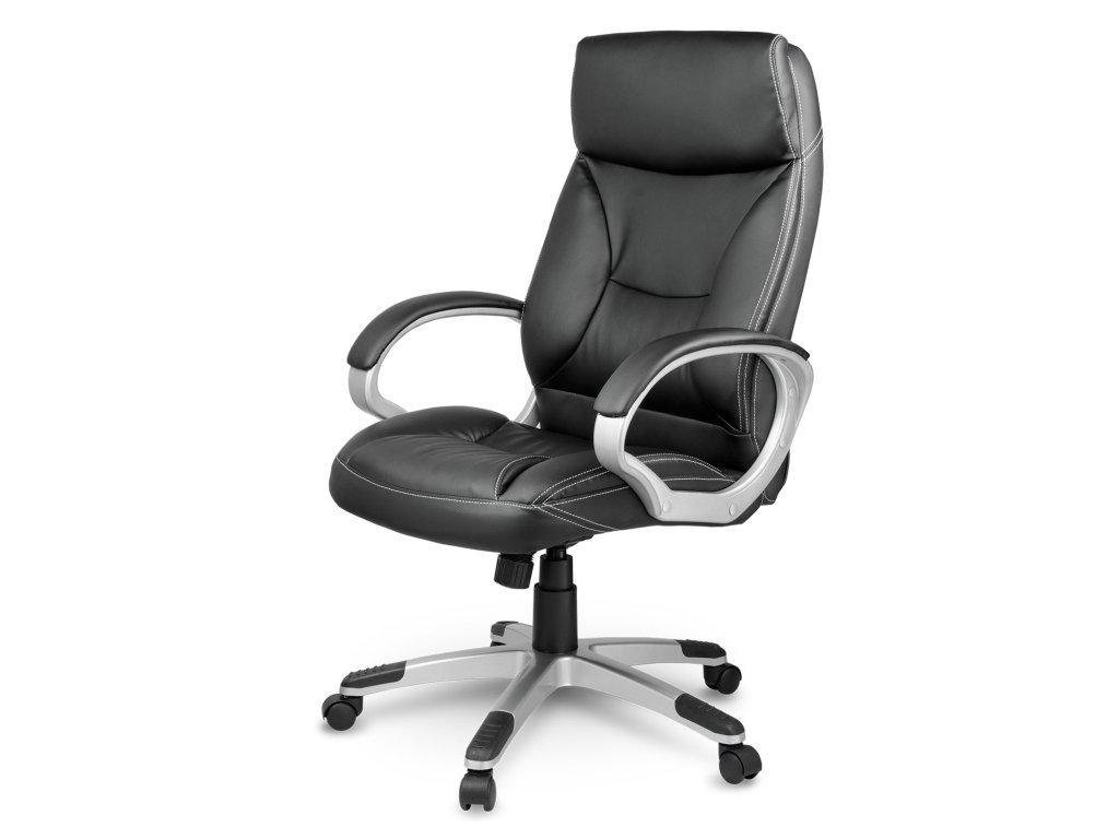 Designul elegant și modern al scaunului se potrivește în orice spațiu de birou organizat. Silueta scaunului este proiectată astfel încât forma ușoară să armonizeze cu linia fermă, conferind un caracter profesional. Caracteristicile estetice sunt completate de cusătura albă care creează un contrast plăcut cu tapițeria neagră din piele ecologică.