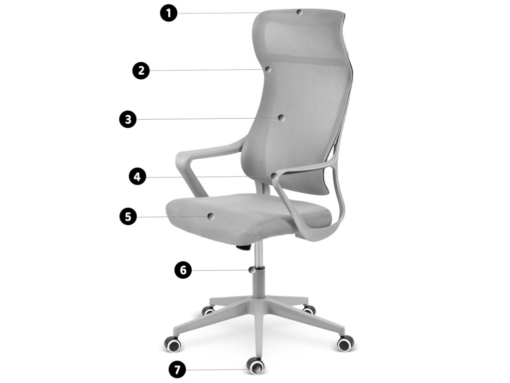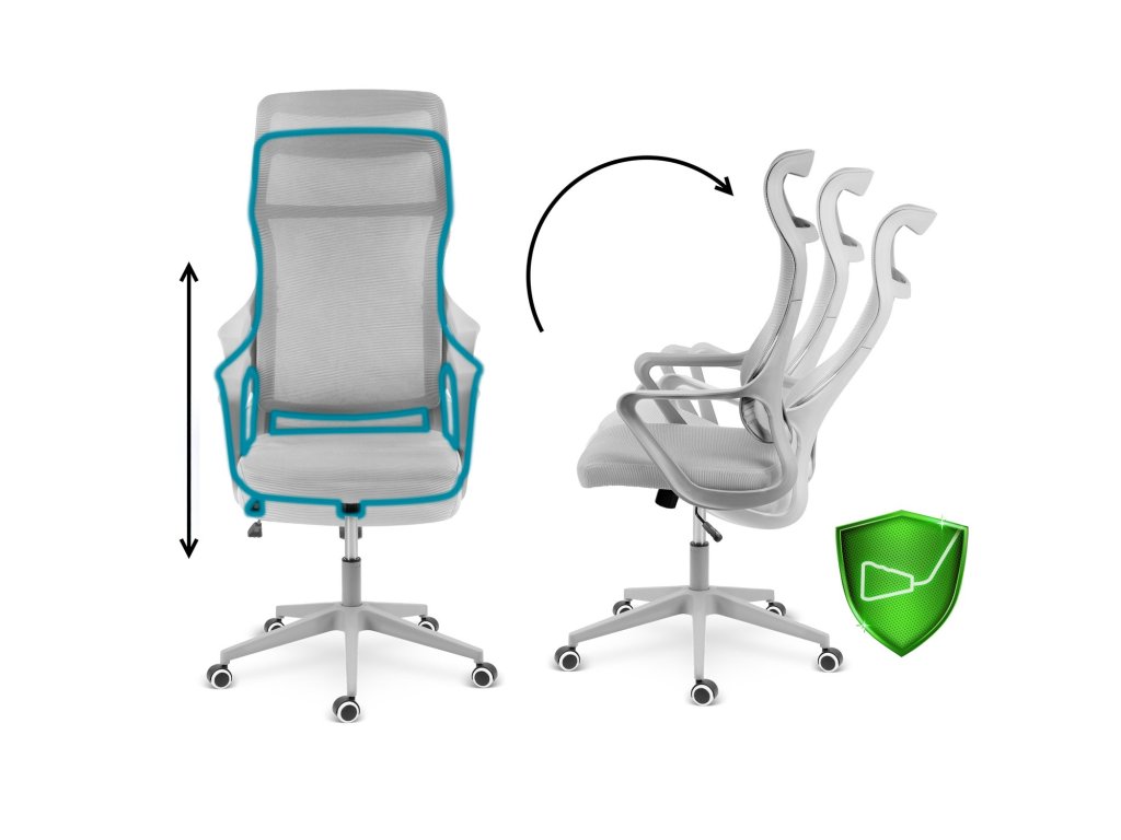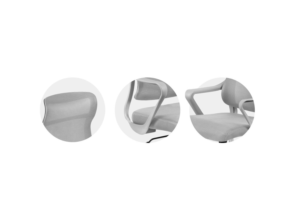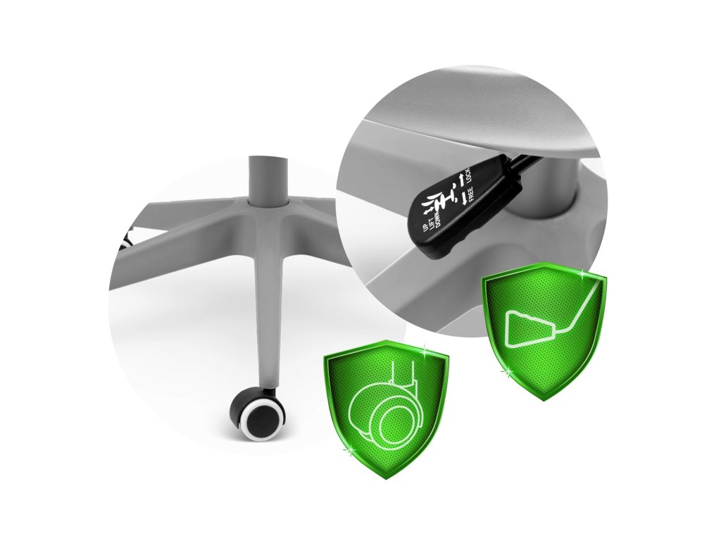 este dotată cu roți din nylon-cauciuc , care se deplasează silențios și nu zgârie podeaua.Scaun de birou Labi gri