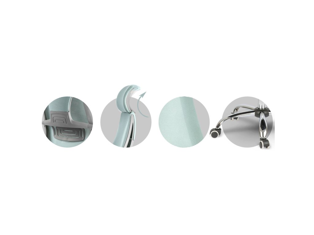 - oferă suport pentru mușchii gâtului spătar înalt și conturat din micro-plasă respirabilă