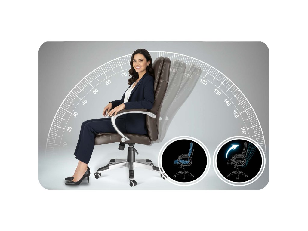 Fotoliul oferă un interval larg de înclinare a spătarului, astfel încât în orice moment poți trece de la poziția de lucru la o odihnă confortabilă.
