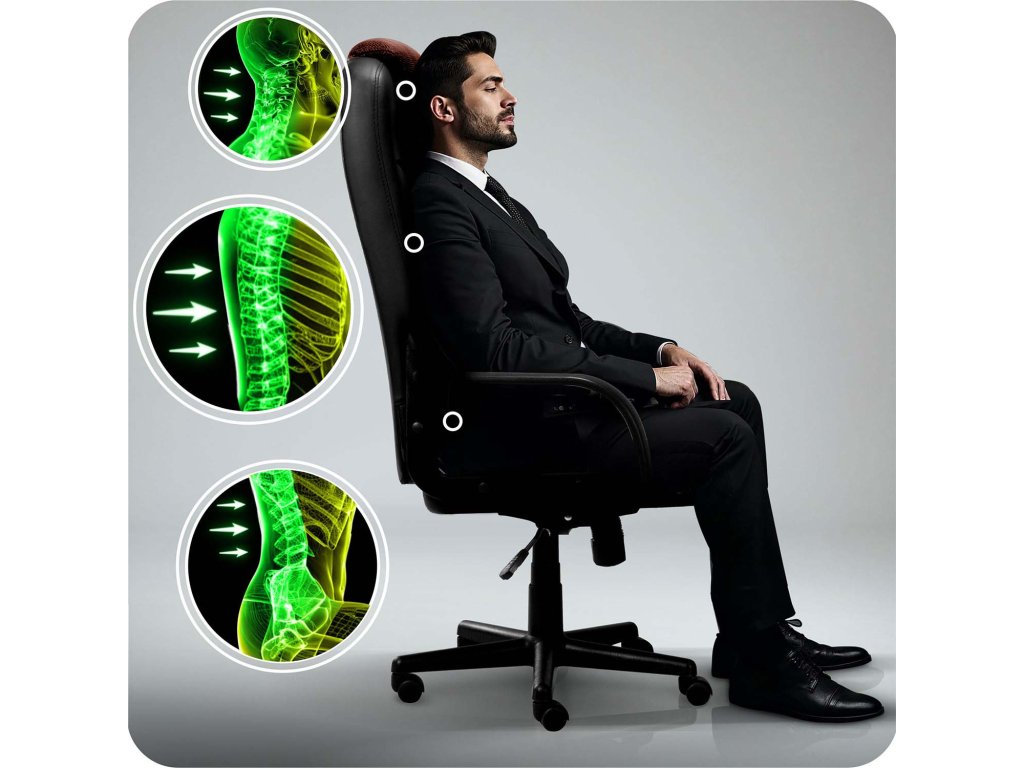 - Umplutura ergonomică se adaptează perfect corpului, distribuit uniform presiunea și ușurând spatele pe parcursul întregii zile.