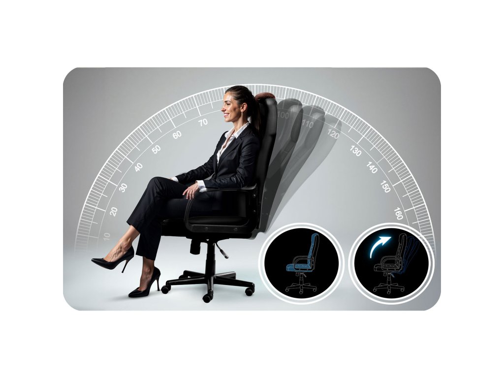 Tot ce trebuie să faci este să înclini ușor spătarul pentru a ușura vertebrele, a relaxa mușchii și a acumula din nou energie – chiar și în timpul unei zile lungi la birou!
