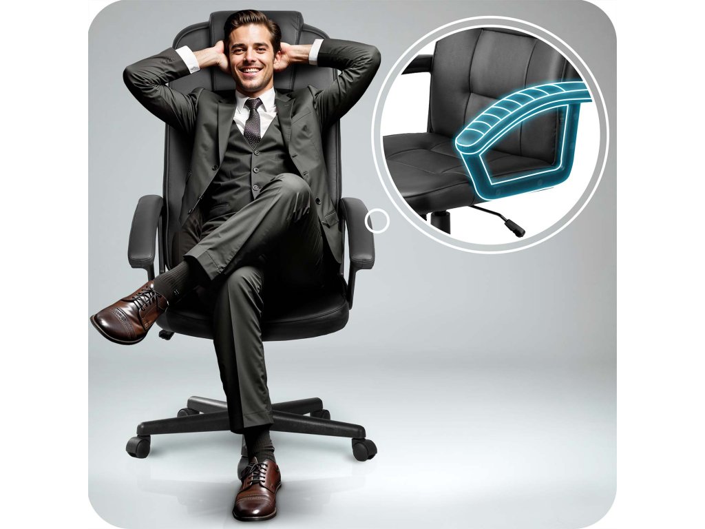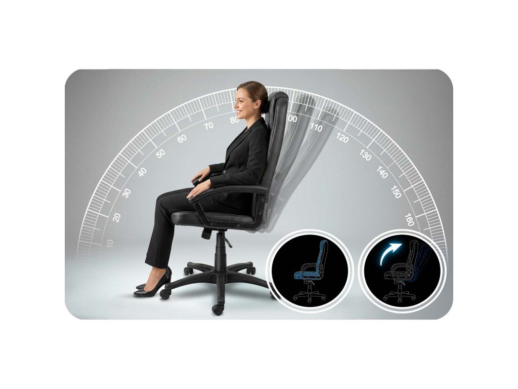 Scaunul oferă un interval larg de înclinare a spătarului, astfel încât să poți trece oricând din poziția de lucru în postura de relaxare.
