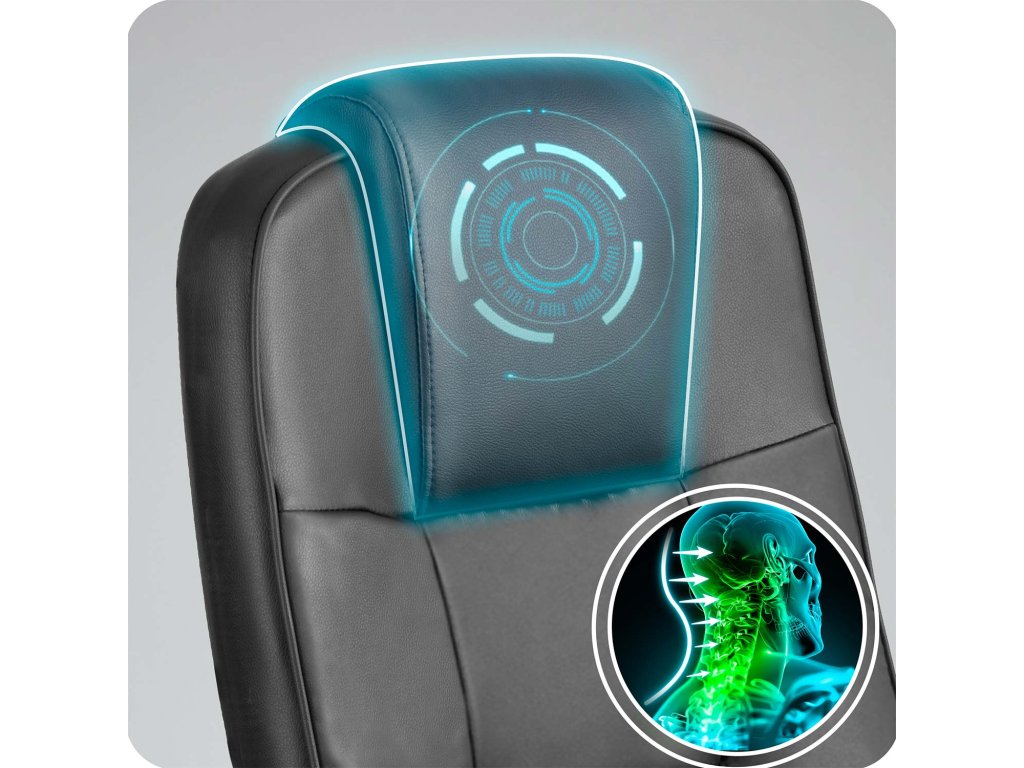 Partea lombară profilată ajută la menținerea unei posturi ergonomice sigure. Capul de spătar profilat distribuie uniform presiunea, descărcând mușchii și prevenind durerile de gât.