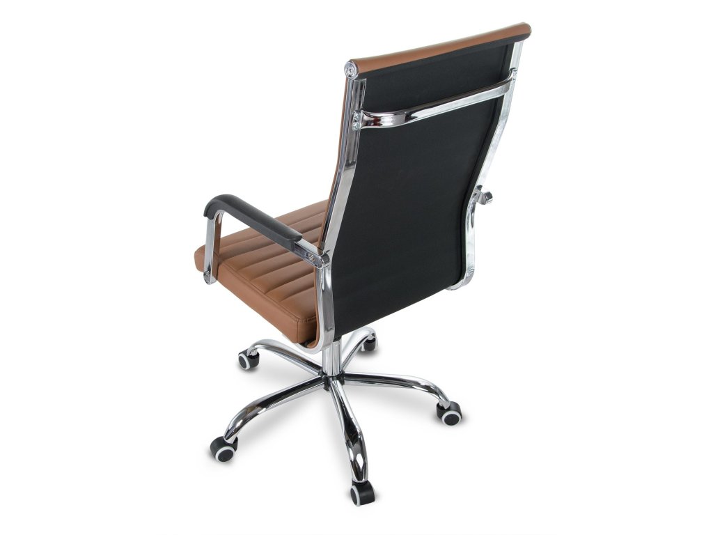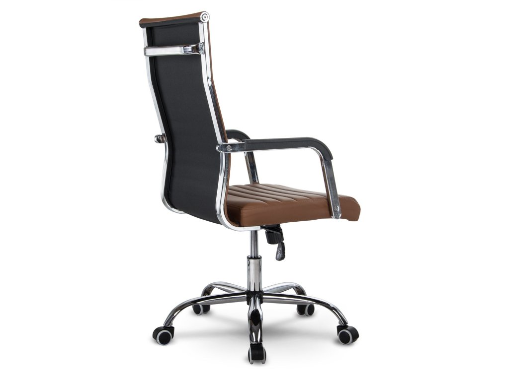 Spătarul modelat special oferă un suport confortabil pentru partea lombară a coloanei vertebrale, asigurând un maxim de confort în utilizare. Baza cu cinci stele cromată, cu roți amplasate larg, contribuie la mobilitate ușoară și stabilizează corect întregul scaun.